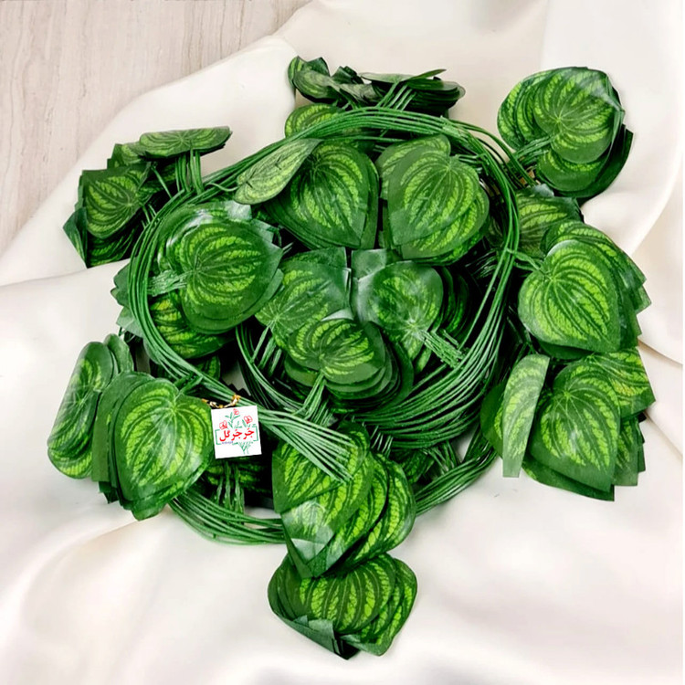 گل مصنوعی جُرجُرگل مدل ریسه برگ نخی هندوانه بسته 12 عددی