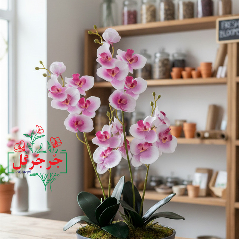 گل مصنوعی جُرجُرگل مدل گل ارکیده دو بازو بسته دو عددی