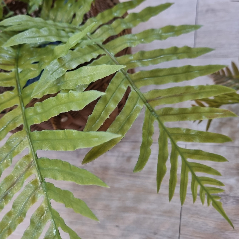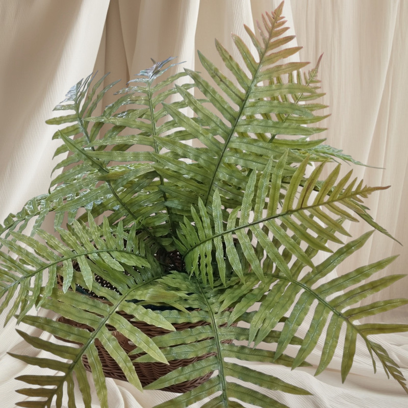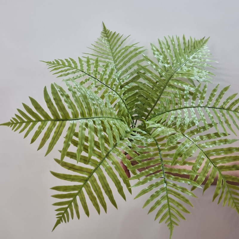بوته سرخس با ارتفاع 40 سانت و دارای 9 برگ است ، جنس برگ ها ژله ایی لمسی است و این باعث میشود که به نمونه طبیعی گیاه سرخس بسیار نزدیک بنظر برسد و در محیط منزل ، کافی شاپ و هر محل دیگه ایی که از این بوته استفاده کنید شادابی و طراوت میگیرد